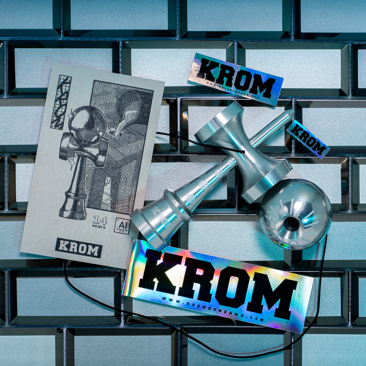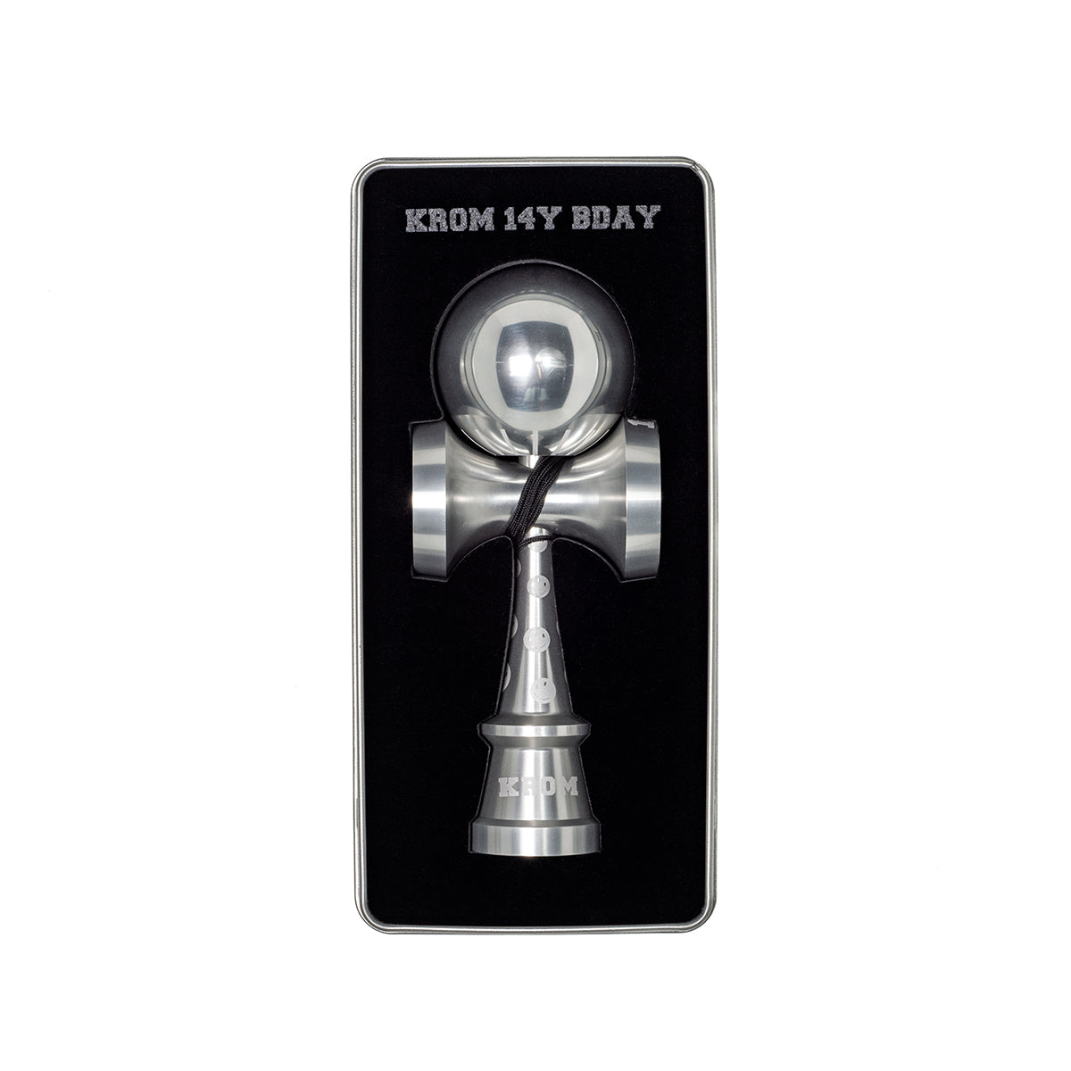 It's our birthday again! The KROM KENDAMA 14Y BDAY BIG METAL kendama was made with our biggest supporters in mind. Made from 100% aluminum and produced in super limited quantity, this kendama is sure to look SO sick next to the rest of your collection. Our team is very stoked to bring this idea to life, and we want to thank you all for making it possible! <3