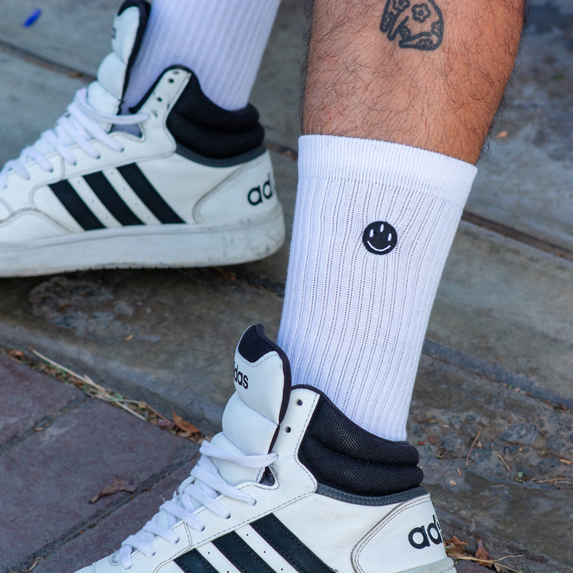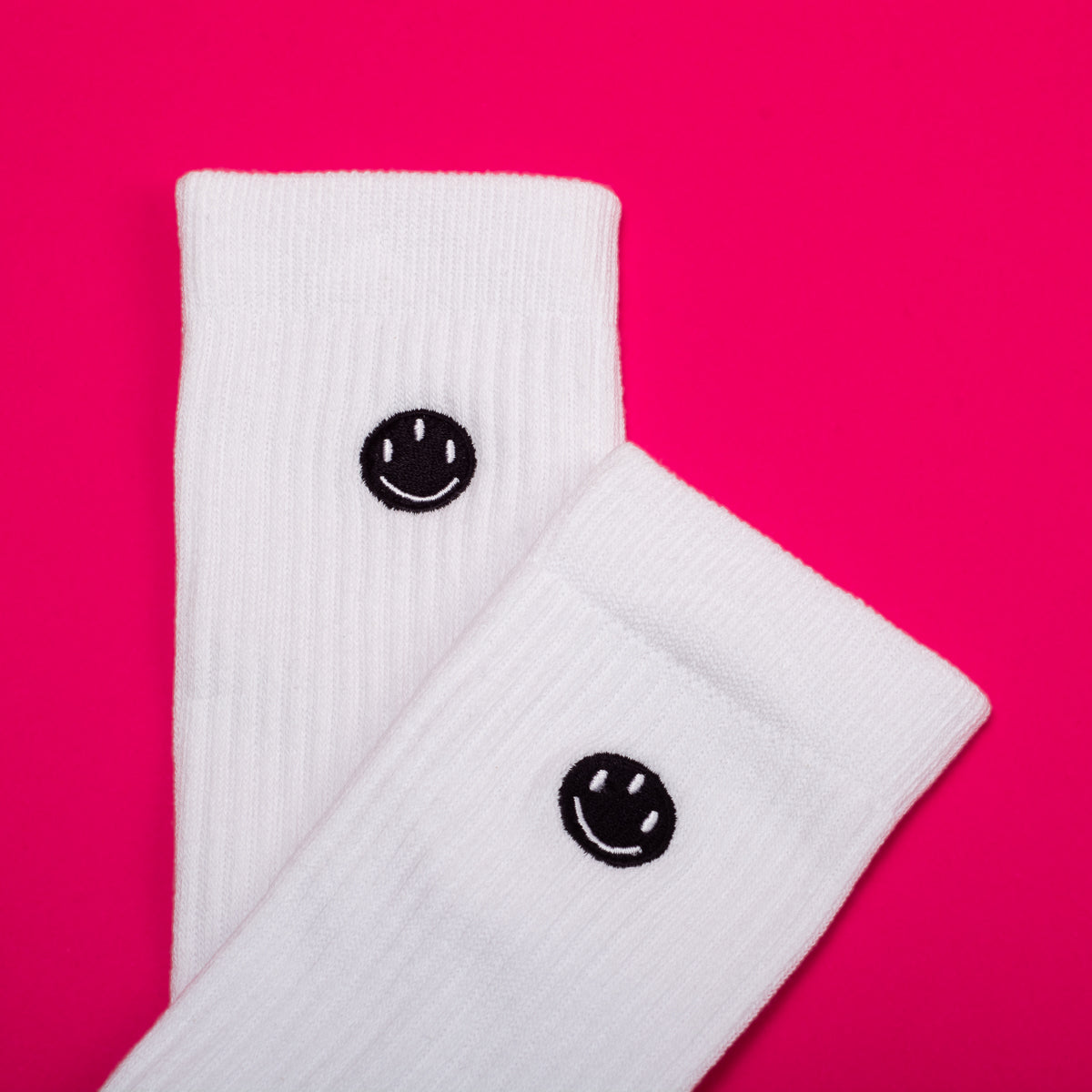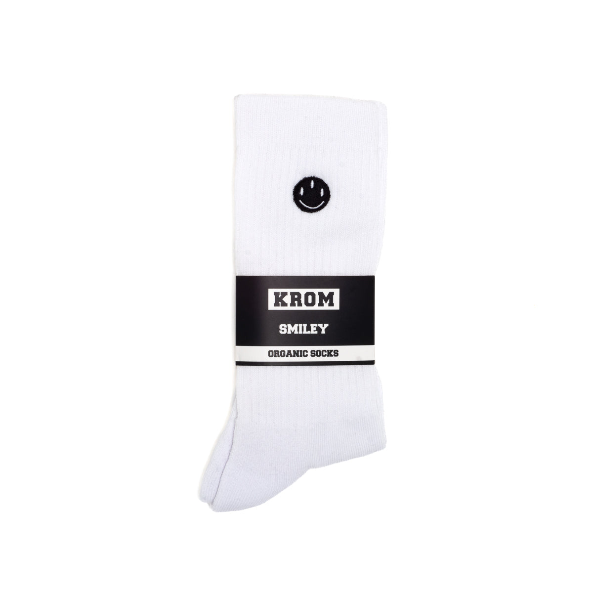 The KROM SMILEY socks are knitted from a soft organic fair trade cotton-blend for optimal comfort, size adaptability and durability. The socks feature our signature 3-eyed SMILEY logo, embroidered on the outward-facing side of each sock.