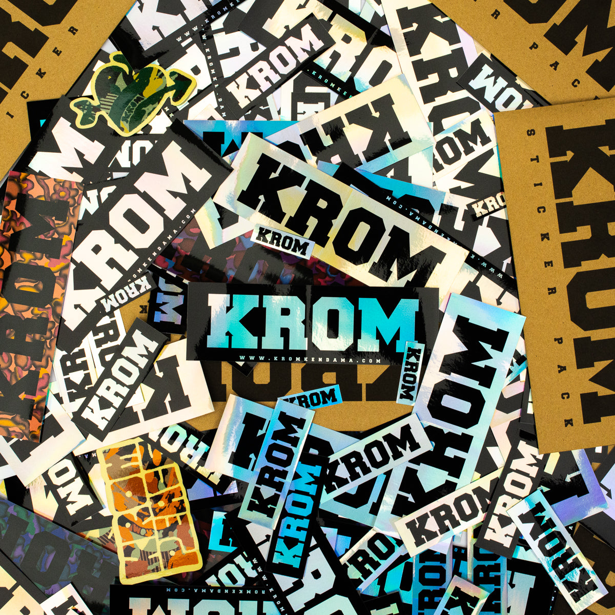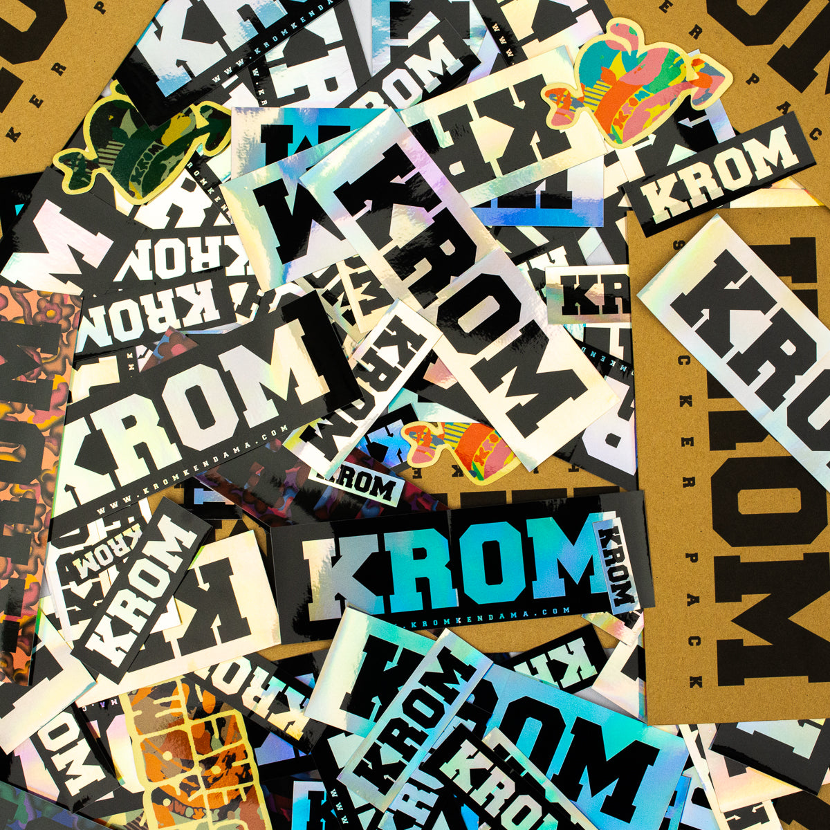 Fresh KROM sticks for your walls, pencil cases, cars, younger siblings and whatever else you might think of. Each pack comes with 20 mixed KROM stickers, we're stoked to see what you get up to. Comes with that little slit-thingy on the back to make them super easy to place on your homie's back before they figure out what you're up to.
