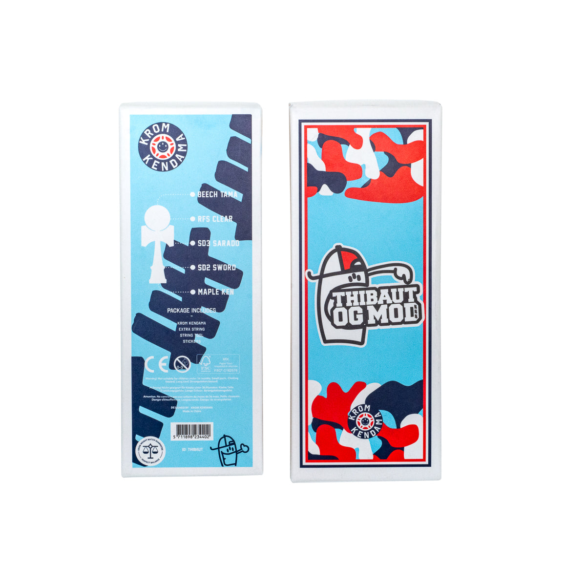 The KROM KENDAMA team is extremely stoked to bring you the THIBAUT OG MOD. Thibaut (AKA "Billy") has been playing kendama for FIFTEEN YEARS, and we're thrilled to mark this special milestone with his own OG kendama. Designed by Thibaut himself, the maple ken is comprised of the SLAYDAWG 2 sword + SLAYDAWG 3 sarado, creating a shape that is HONED and ready to go.