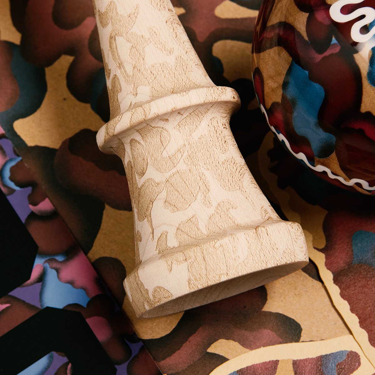 The sound of kendama is the sound of peace, that's what the PLASTICITY series is about. Although camouflage has been used for combative purposes throughout history, this dama signifies the opposite.